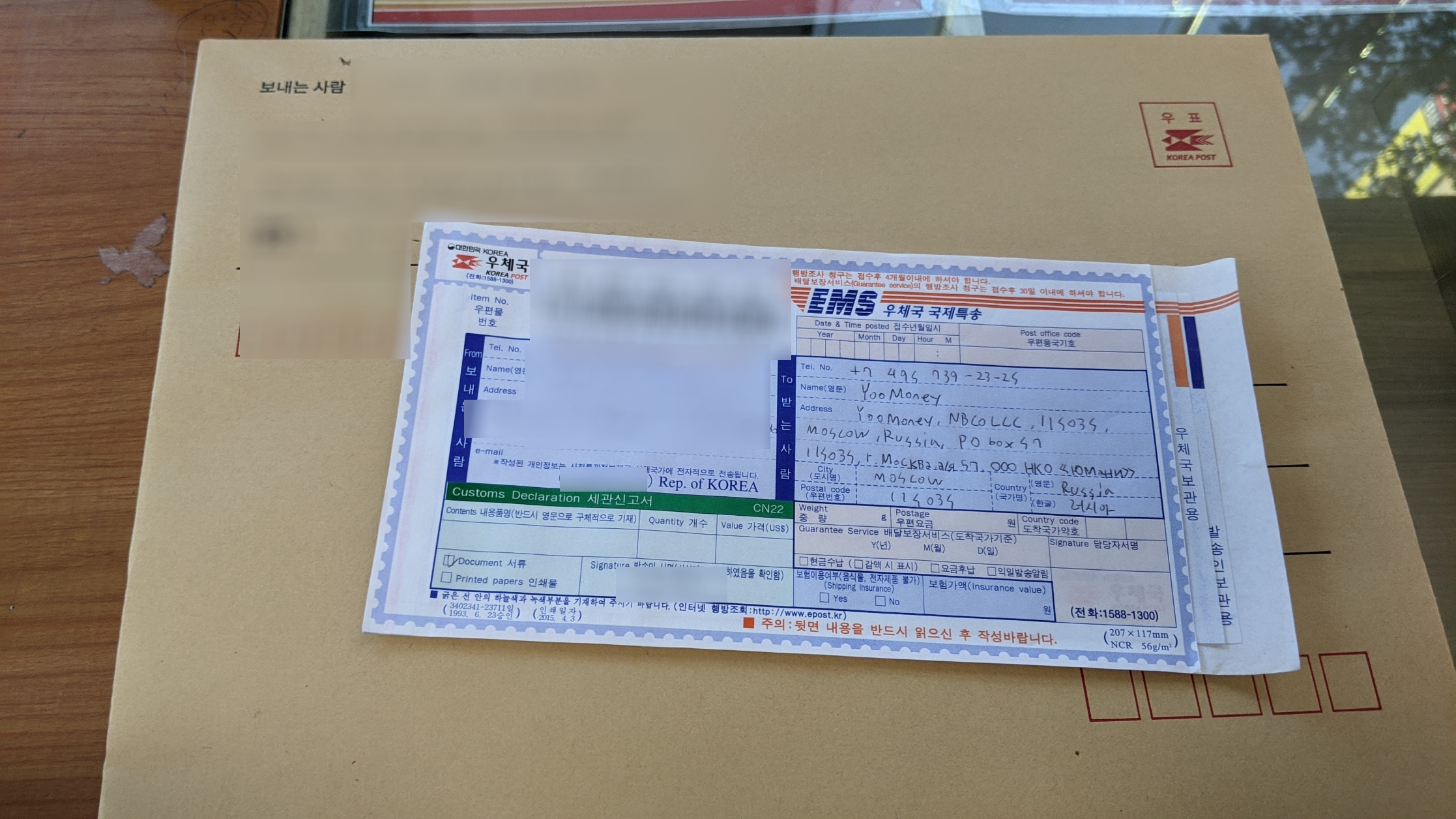 참고로 주소 빼고는 다 러시아어로 적어야 한다고 합니다.