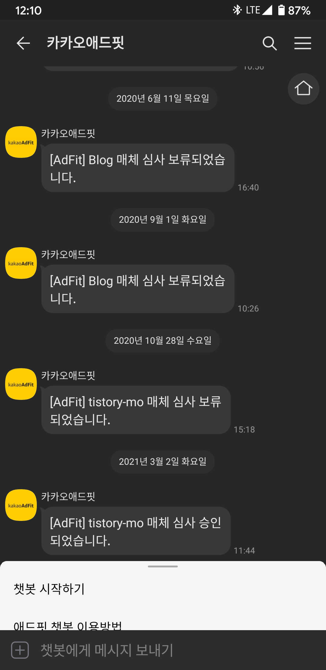 아무튼 애드핏 관리 메뉴에 들어가니 이렇게 뜨네요.