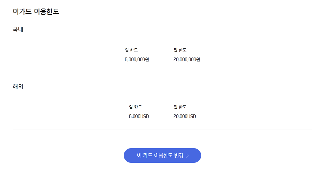 그리고 어째선진 모르겠는데 한도가 100만원/500만원으로 설정되어 있습니다.