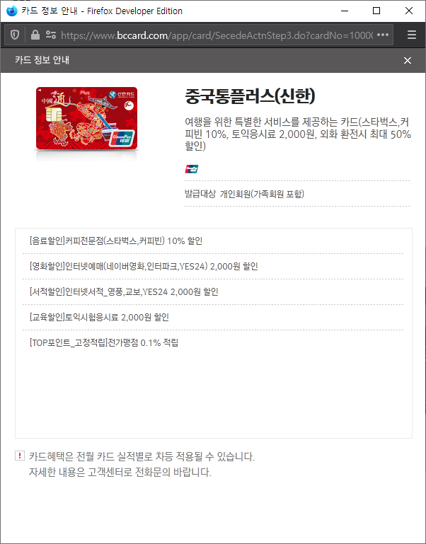 카드 혜택은 이렇습니다.