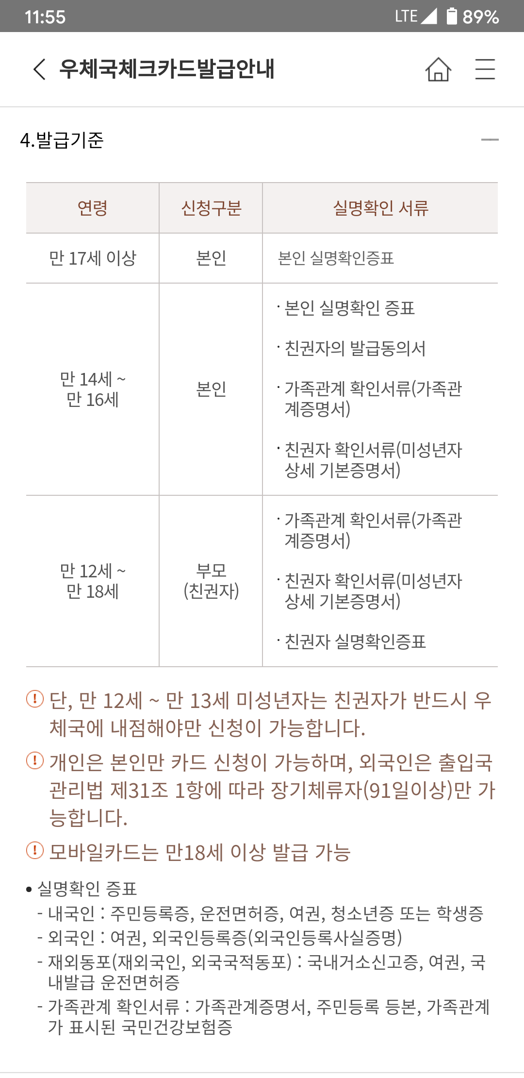 찾아봤는데 만 17세 이상은 신분증만 잘 챙기면 되는 것 같습니다.