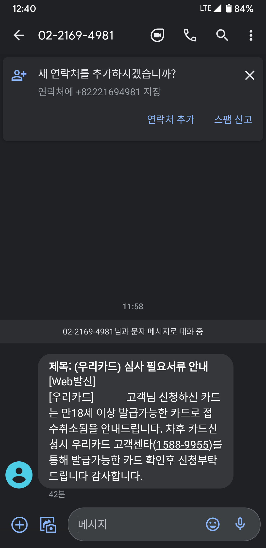 그리고 우리카드에서 카드 하나를 신청했습니다.
