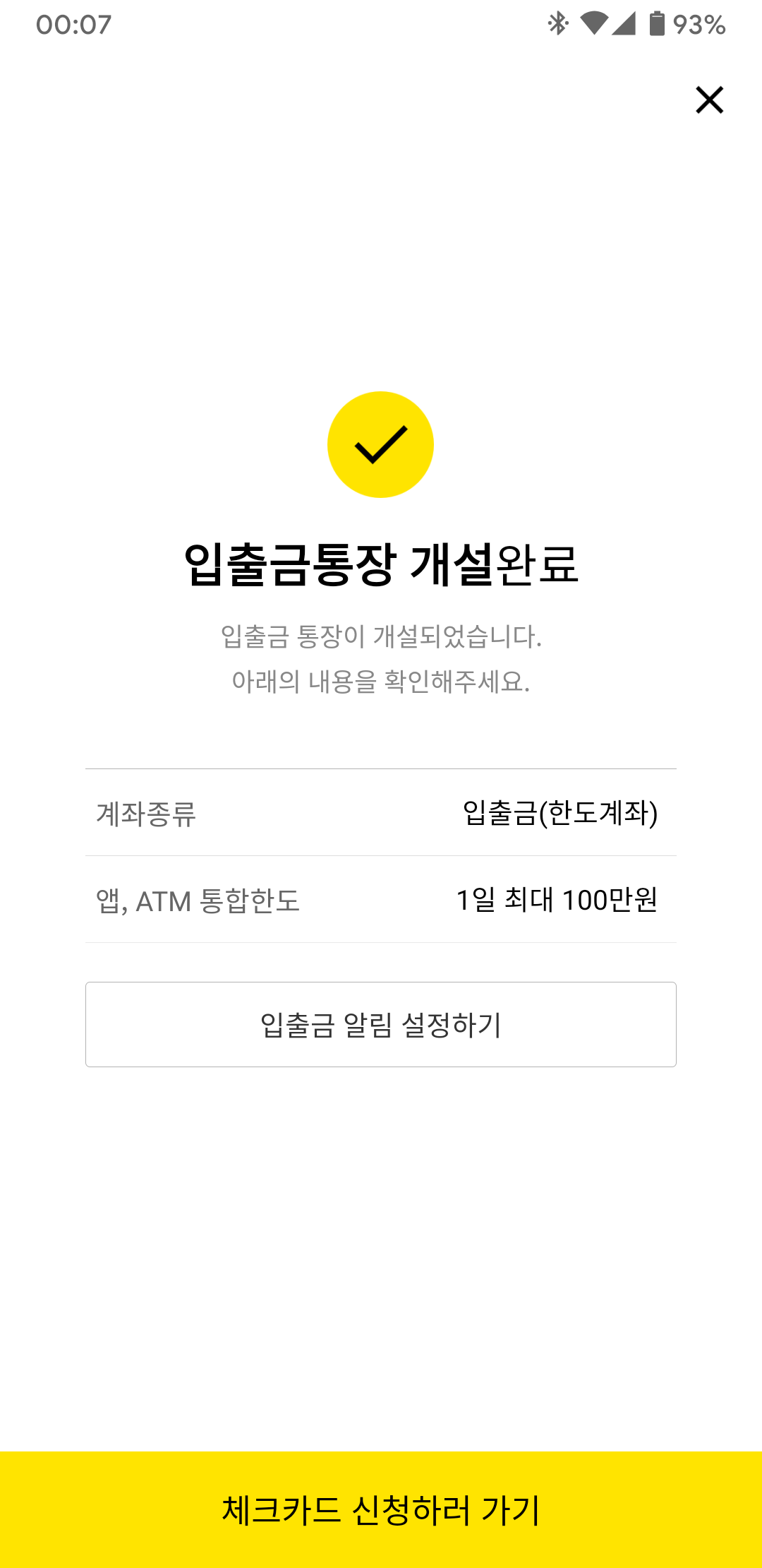 우선 처음으로 만든 건 카카오뱅크 계좌+체크카드입니다.
