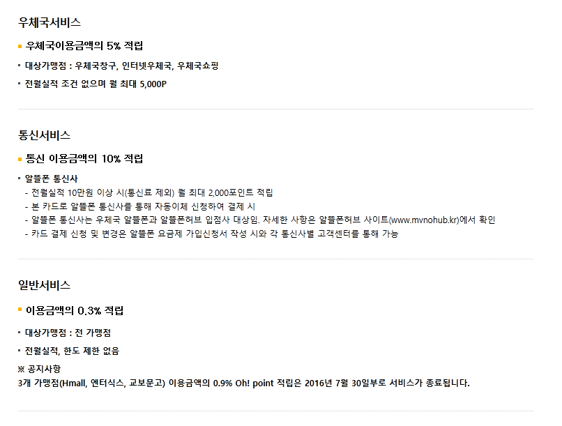 전월실적 10만원 이상이면 알뜰폰 10% 적립(월 2천 P 한도)도 있는데, 알뜰폰을 안 써서 의미가 없네요.