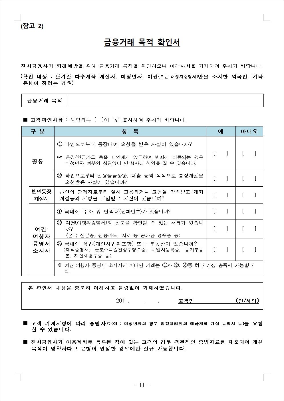 체크카드 발급에 금융거래 목적 확인서를 씁니다(!)