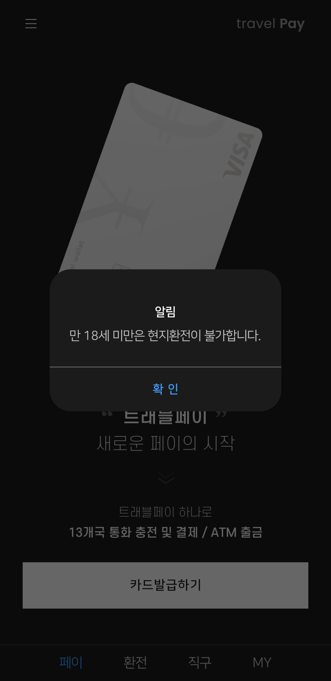 사실 이 카드를 안건 몇 달 전이었는데, 생일이 지나도 이런 화면이 뜨면서 안되더군요.
