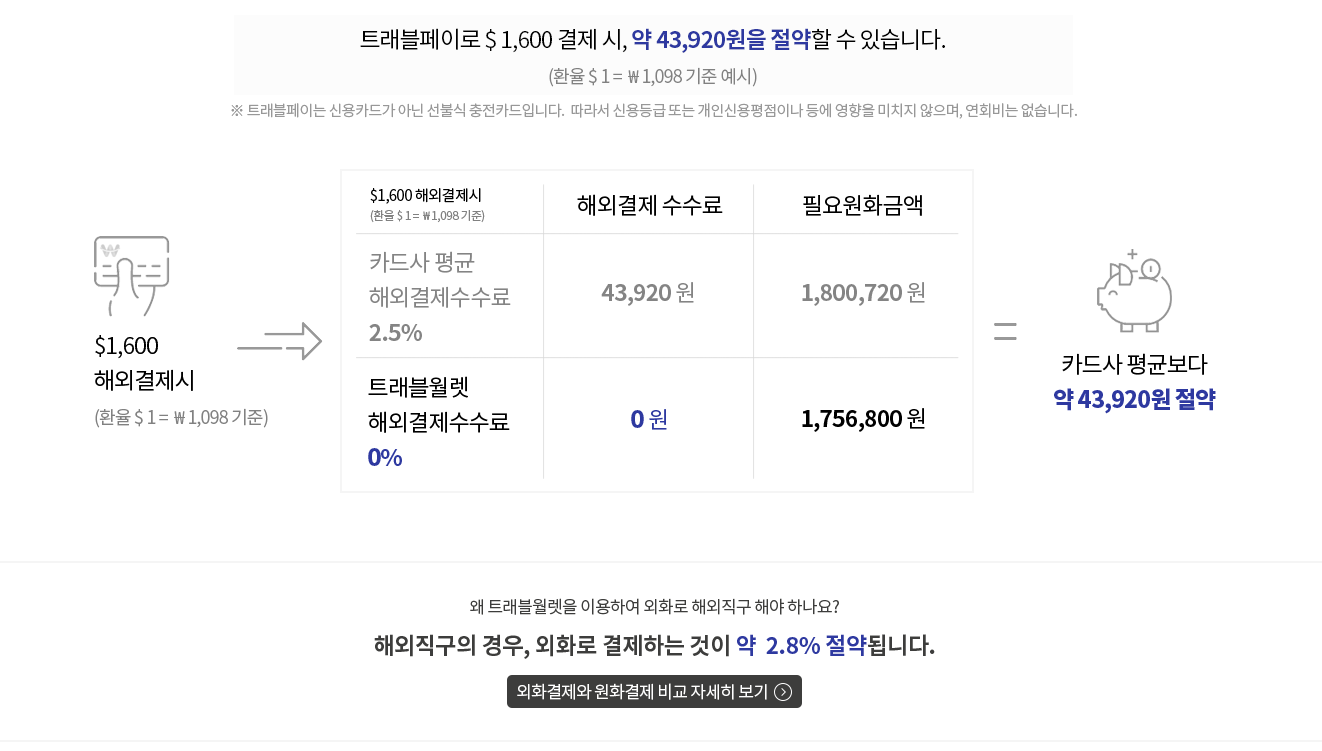 심지어 일반 신용카드나 체크카드의 해외결제 수수료가 평균 2.5%라며 비싼 것처럼 적어놨습니다.