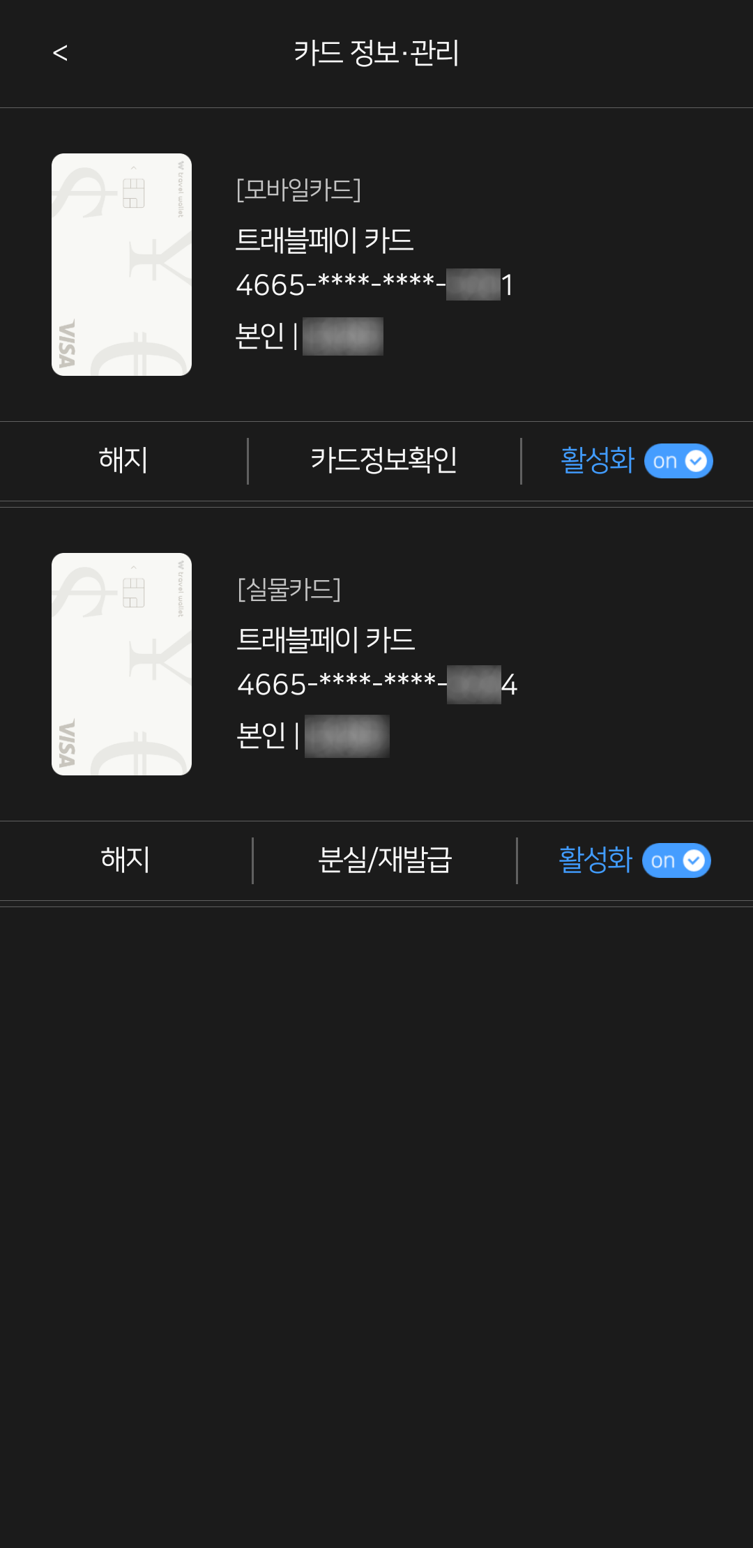 그런데 모바일카드와 실물카드 번호가 서로 다르더군요. 왜 그런 걸까요...