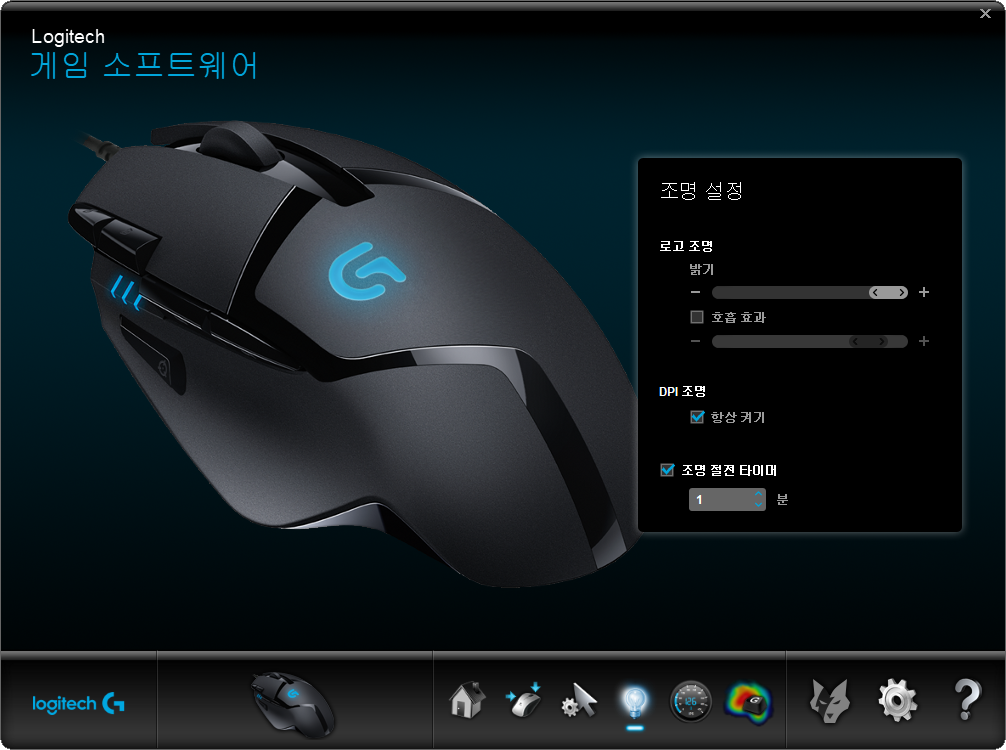 LED는 왼쪽의 DPI 수준 확인용 LED와 G 글자에만 들어옵니다.