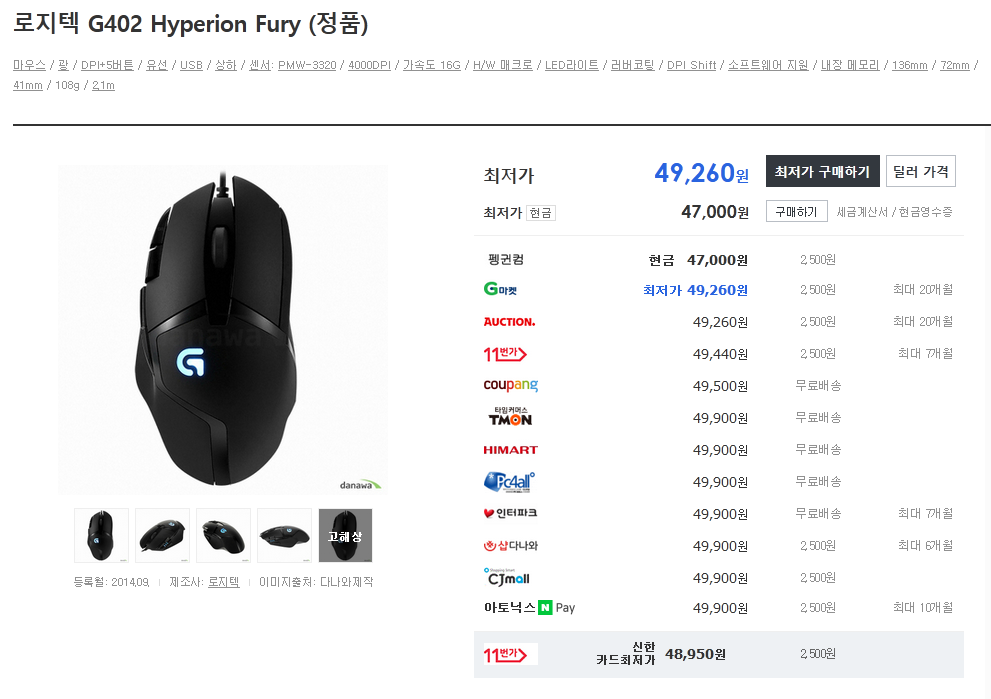 전엔 G102를 쓰고 있었는데, 좀 오래 쓴 것 같아서 새로 사는 김에 좀 비싼 걸로 사봤습니다.