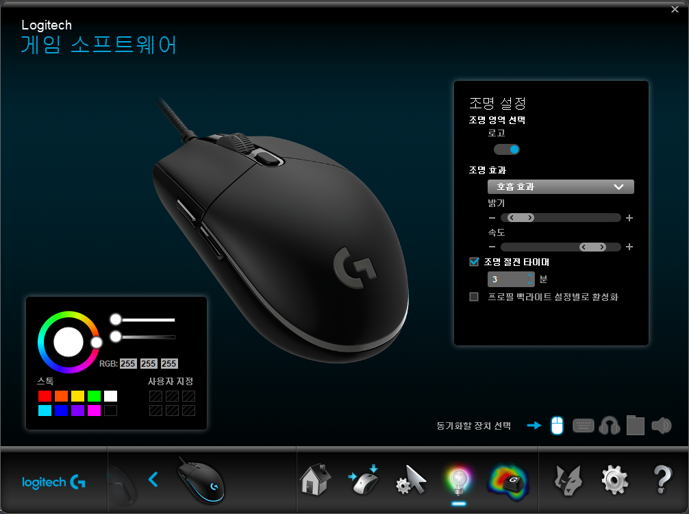LED는 왼쪽의 DPI 수준 확인용 LED와 G 글자에만 들어옵니다.