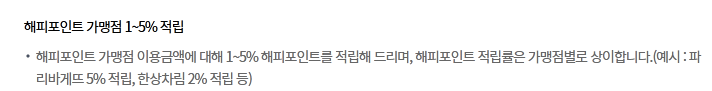 그리고 해당 가맹점에서 결제 시 해피포인트와 GS&POINT가 자동으로 적립되는 기능도 있습니다.