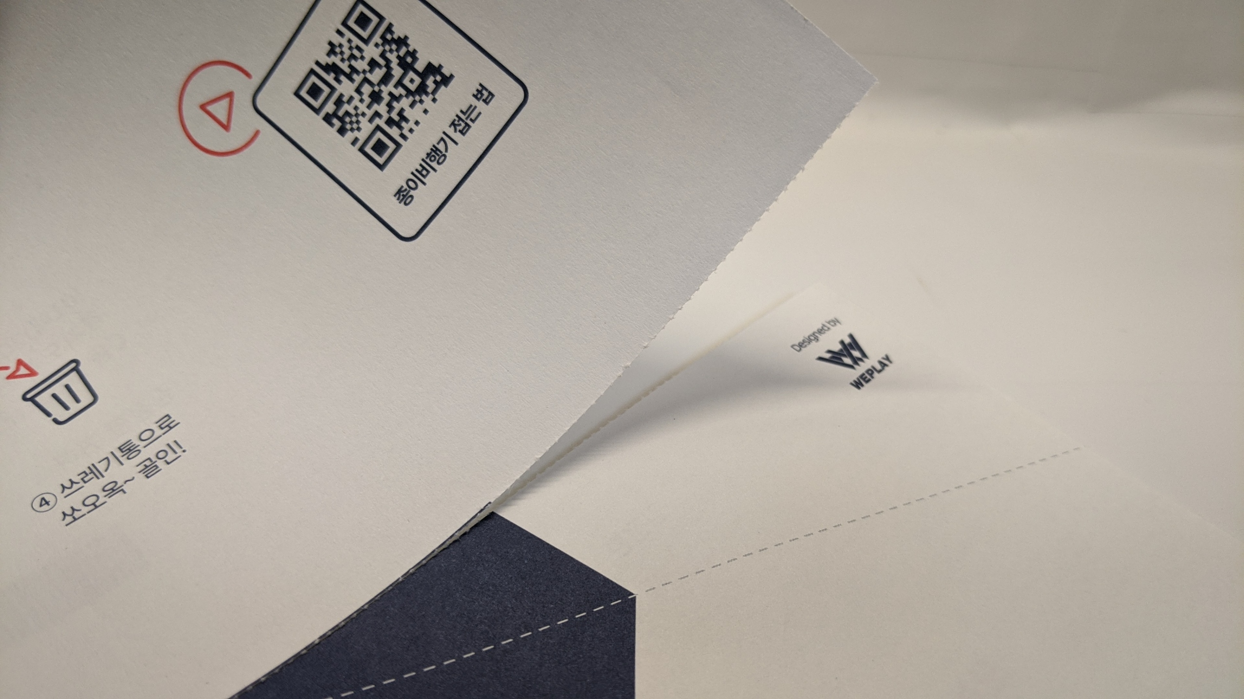 신기하게 카드가 붙어있는 종이로 종이비행기를 접을 수 있게 해 뒀습니다.