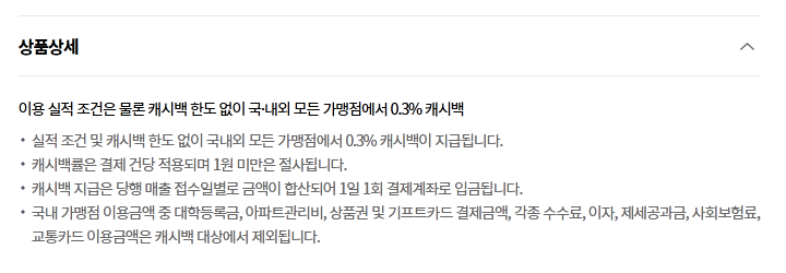 우선, 무실적으로 0.3% 캐시백을 해준다고 합니다.