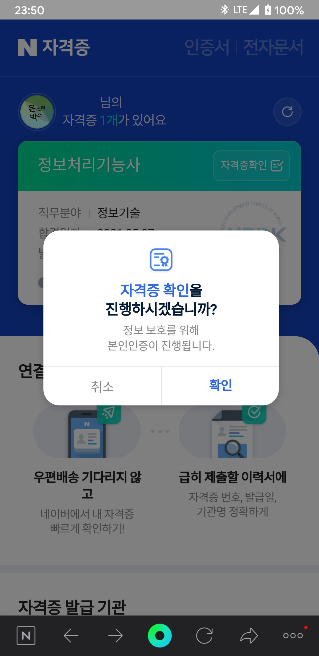어제는 카카오톡 지갑에 자격증을 등록했었죠.