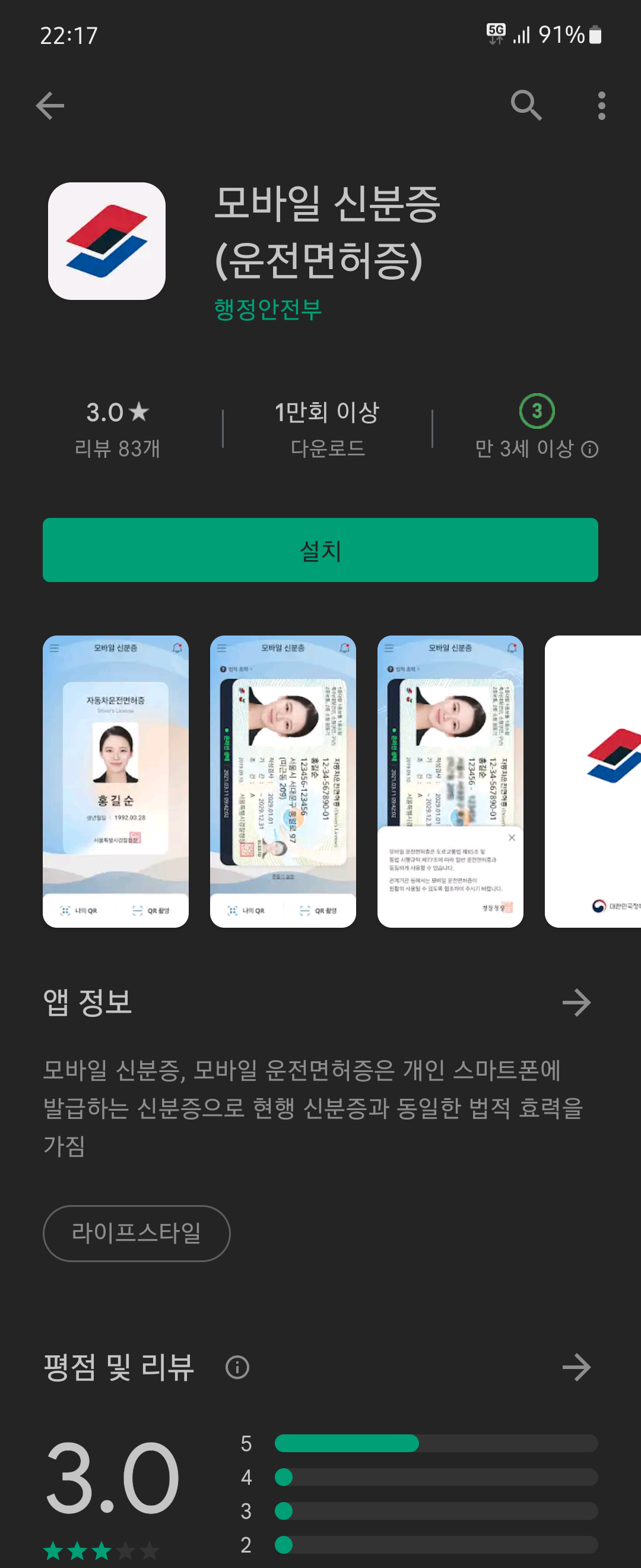 우선, 모바일 운전면허증을 발급하기 위해선 '모바일 신분증' 앱을 설치해야 합니다.