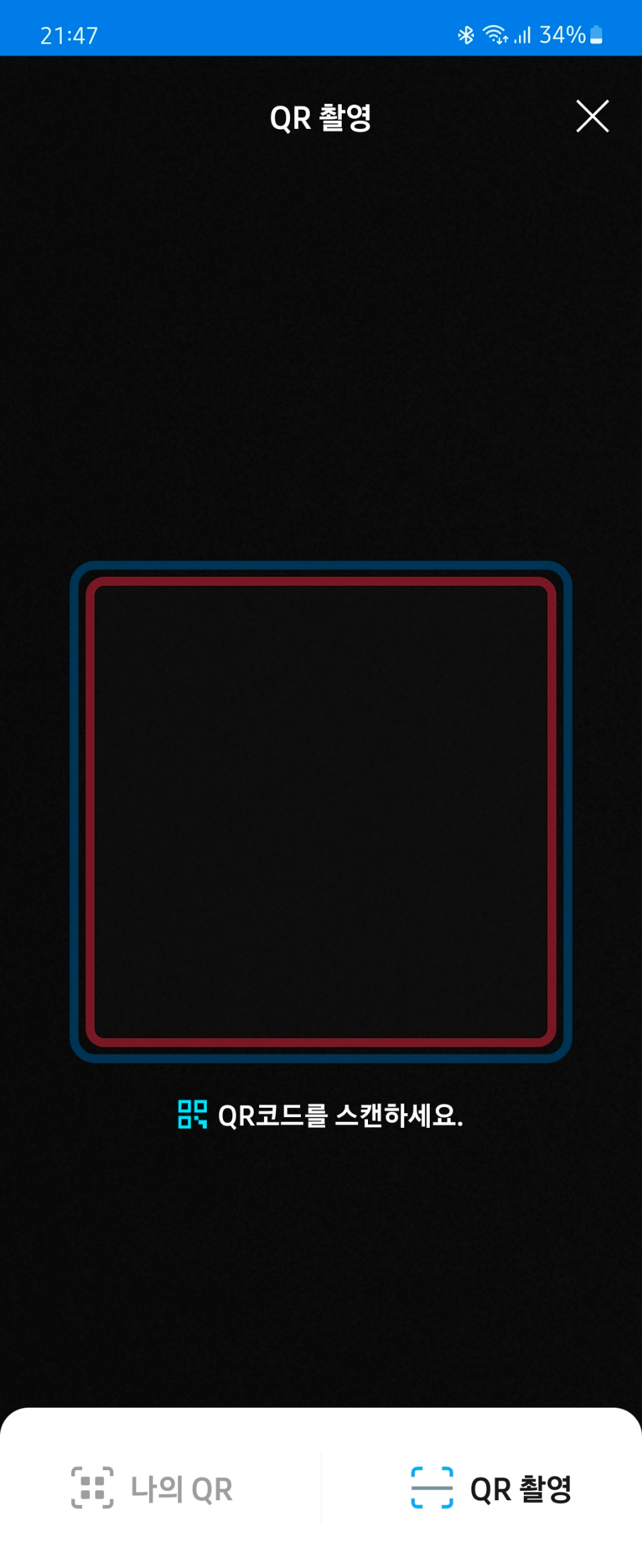 QR 촬영 버튼을 누르면 말 그대로 QR코드 인식 화면이 나옵니다.