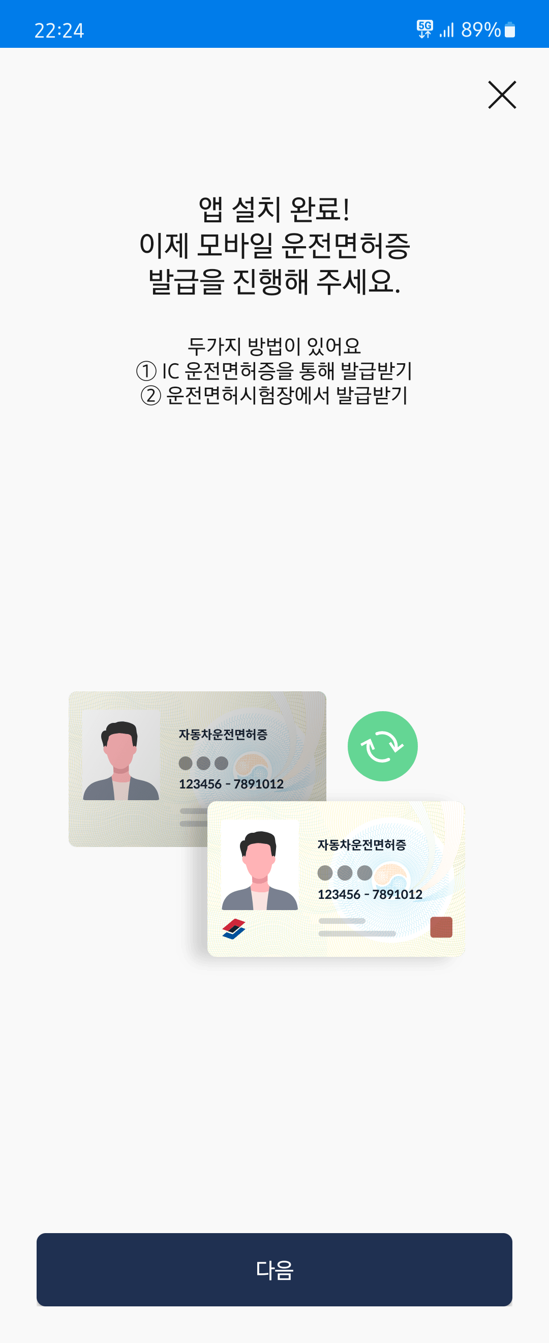 이제 모바일 운전면허증 발급을 진행하라고 나옵니다.