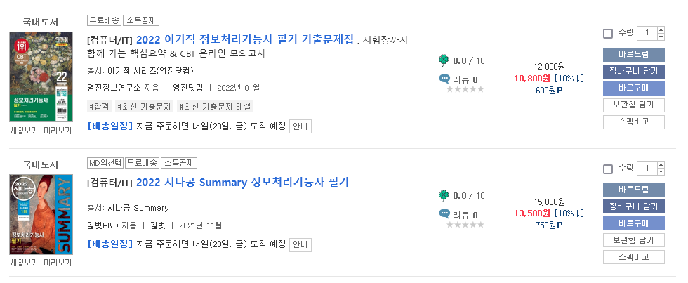 기본서는 900원 차이지만, 기출문제집은 2700원이나 차이가 나죠.