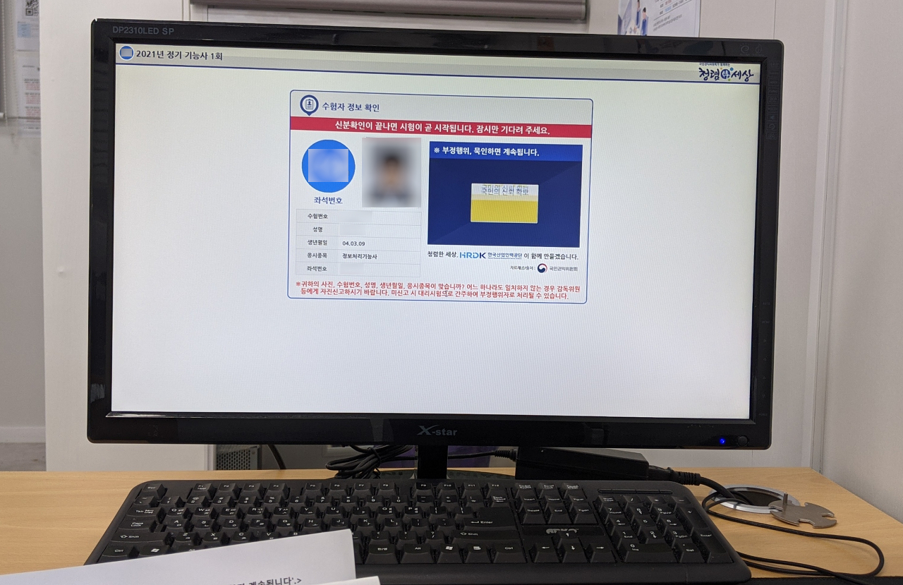 시험은 컴퓨터로 객관식 문제를 보고 마우스로 답을 선택해서 푸는 시험이었습니다.