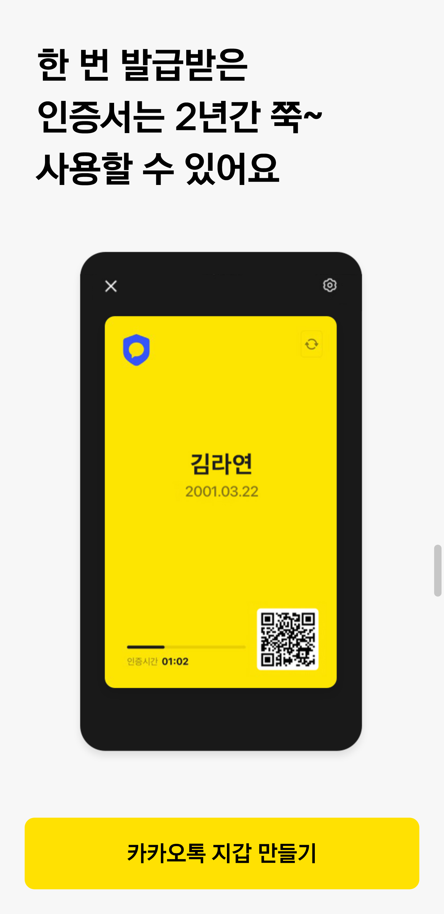 지갑 인증서와 달리 인증용 QR코드가 없습니다.
