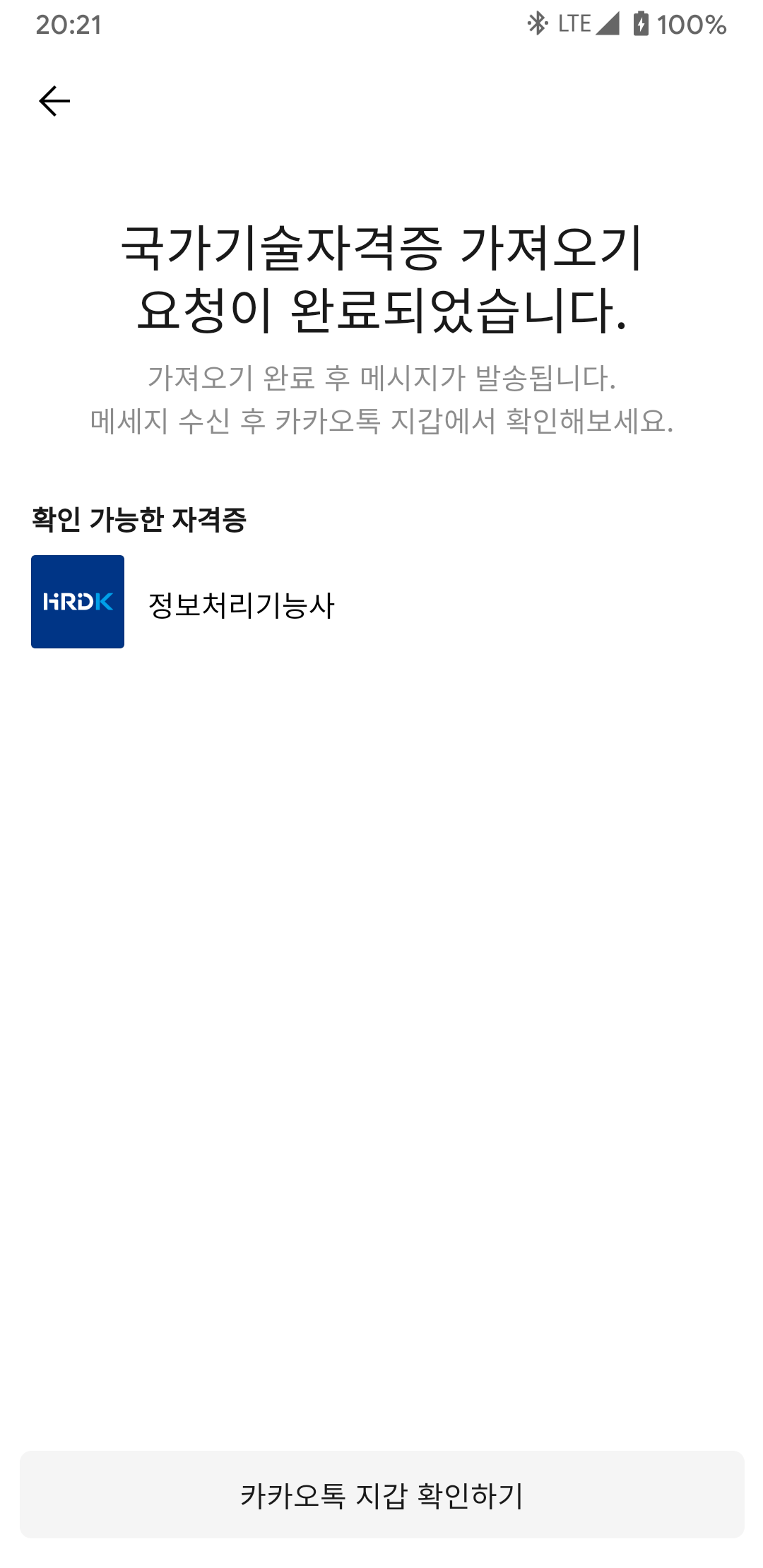 가져오기가 정상적으로 완료되면 발급 완료가 되었다는 알림톡도 날아옵니다.
